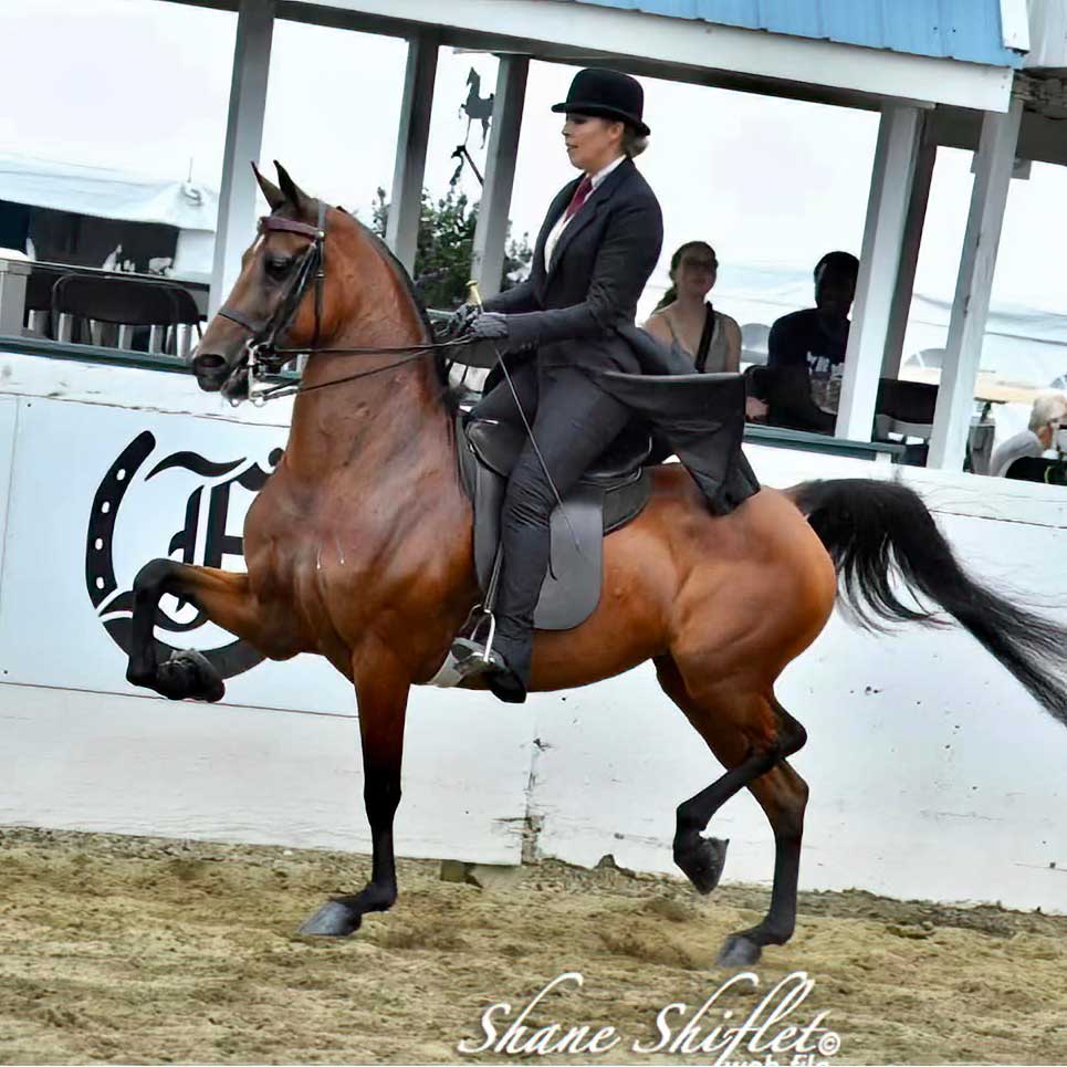 - ADH Light My Fire (out of LVM Steal The Stage): World Champion 3YO Park Saddle, Grand National Champion 3YO Park Saddle, Grand National Reserve Champion 3YO Park Harness