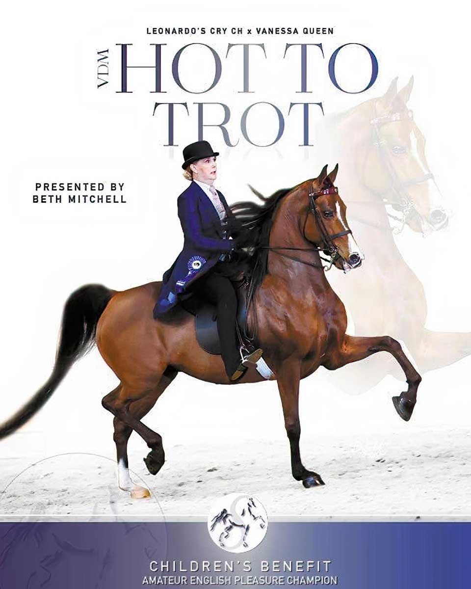 - VDM Hot To Trot (out of Vanessa Queen): World Champion Futurity 3YO Pleasure Driving, World Reserve Champion Futurity Yearling Colt, Regional Champion English Pleasure