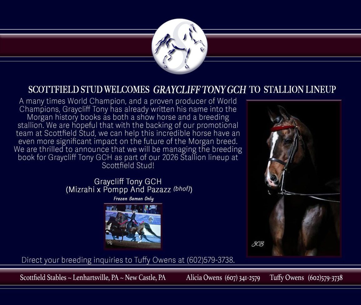 We could not be more proud, or more flattered, to have such an incredible lineup of stallions standing at Scottfield Stud, LLC this year. With too many great ones to chose from, we listed them alphabetically; ranking them would be impossible. So please give us a call with your breeding inquiries. With the diversity of bloodlines offered, and countless world and regional titles between them, we are certain we have the right stallion for your special mare!!