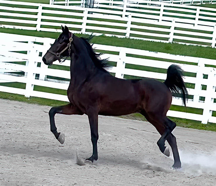 2019 gelding | Black, upheaded, handsome and expressive, this friendly 6YO will excel in the English Pleasure or Classic Pleasure divisions. Balanced and correct moving, he’s an upheaded prospect that’s breeder-owned and still on a local show budget! All the hard work has been done here at Scottfield and he is ready to go home and do the winning for you.