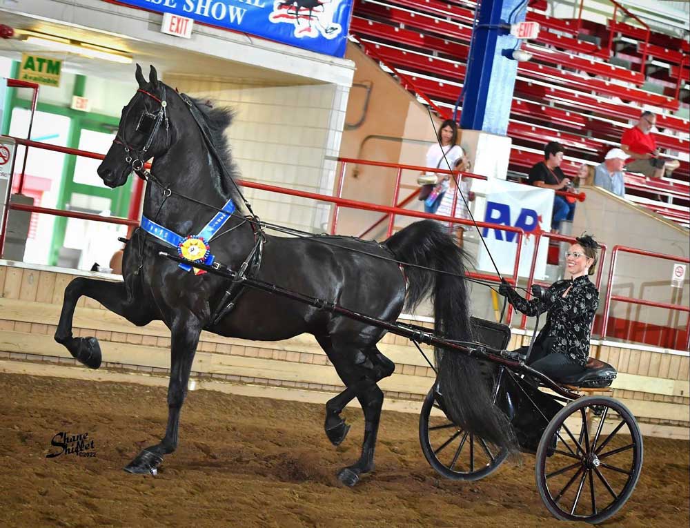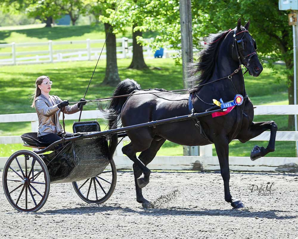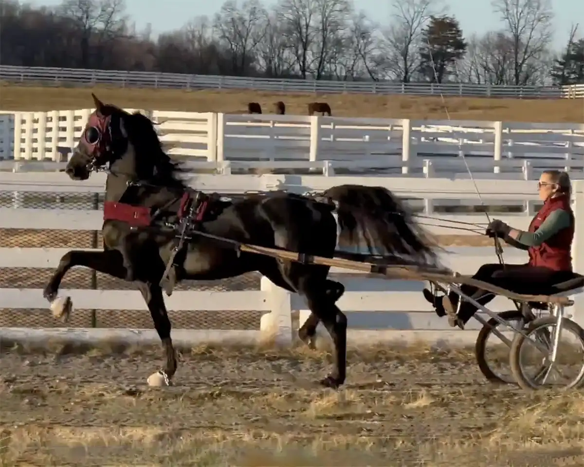 2021 gelding | By a 2x WC park harness horse and out of a spicy park harness mare, it is no surprise that this 2YO gelding can wave his legs and wants to put on a horse show. Just recently hooked and coming into his own, now is the time to buy this youngster to develop and resell for big money next show season.