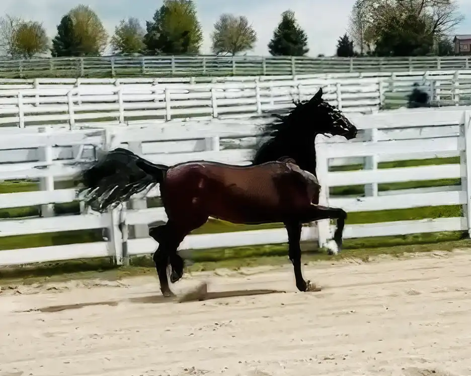 2021 filly | Pretty, athletic and incredibly bold, this dark brown filly is JUST like her mother in her disposition. Given how many world and national titles her dam won for us, we think this to be a pretty good promise of things to come! Loads of natural motion and a great attitude that will take her all the way to Oklahoma, this mare is a super prospect for the show ring, and will surely be a huge asset as a broodmare down the line.
